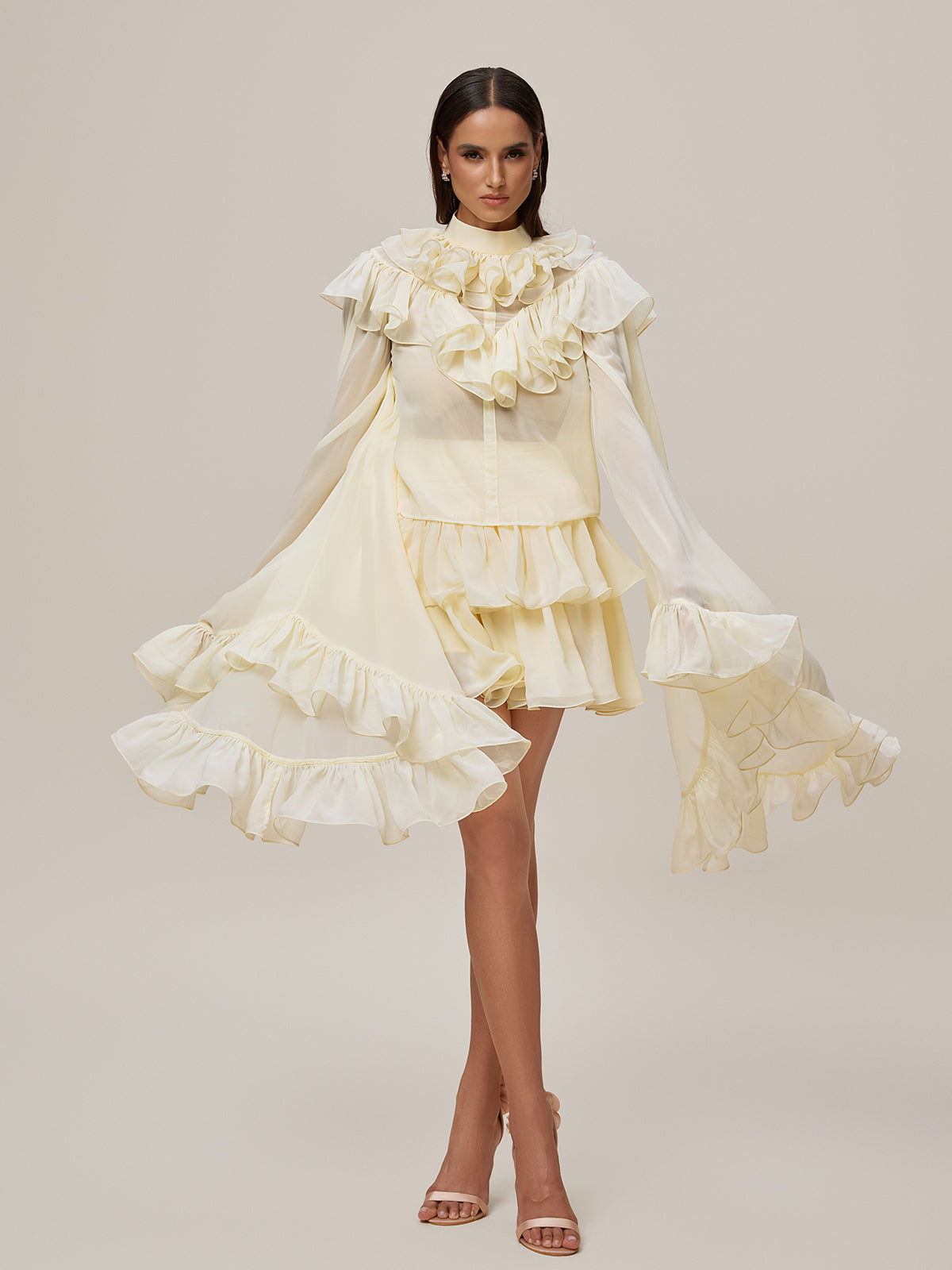 Elevate your style with the Oracion Bell Sleeve Ruffle Tiered Skirt Set. Featuring elegant bell sleeves and a tiered ruffle skirt, this set combines comfort and feminine charm for a effortlessly graceful look. Perfect for both casual outings and special occasions, it ensures you stand out with refined sophistication and flattering movement.