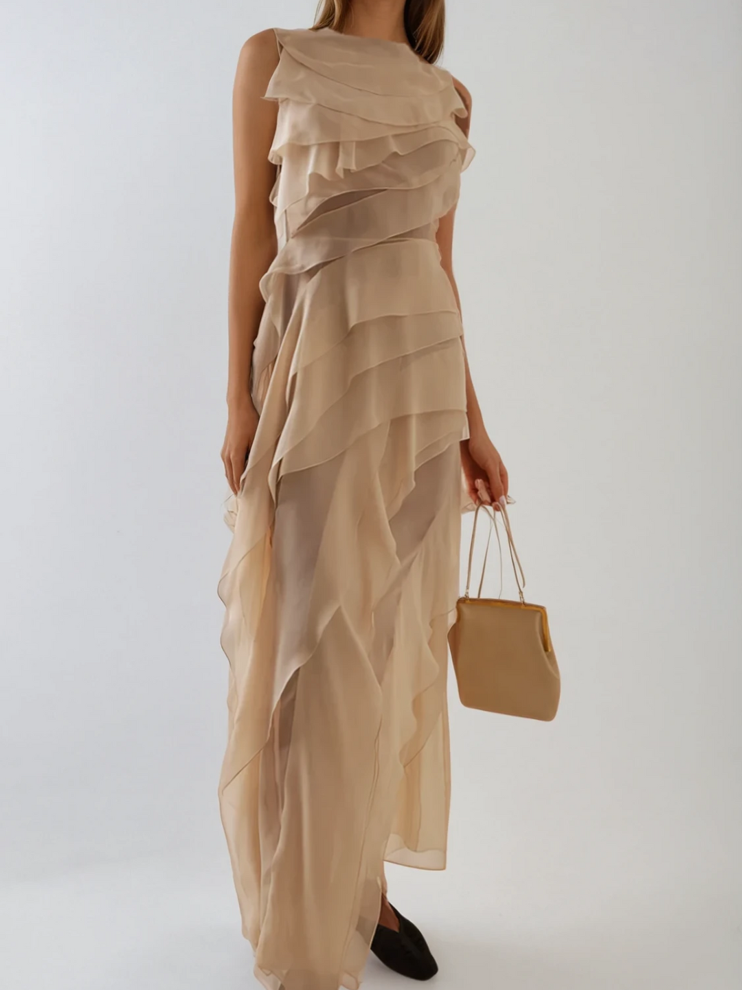 Sukienka maxi Waelyvira bez rękawów z falbanką