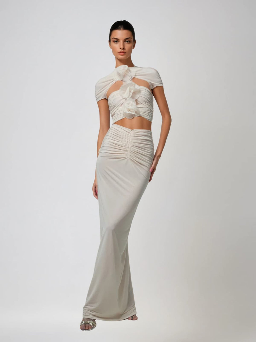 Komplet spódnicy z marszczeniami i wycięciami w kwiaty Ilvandis