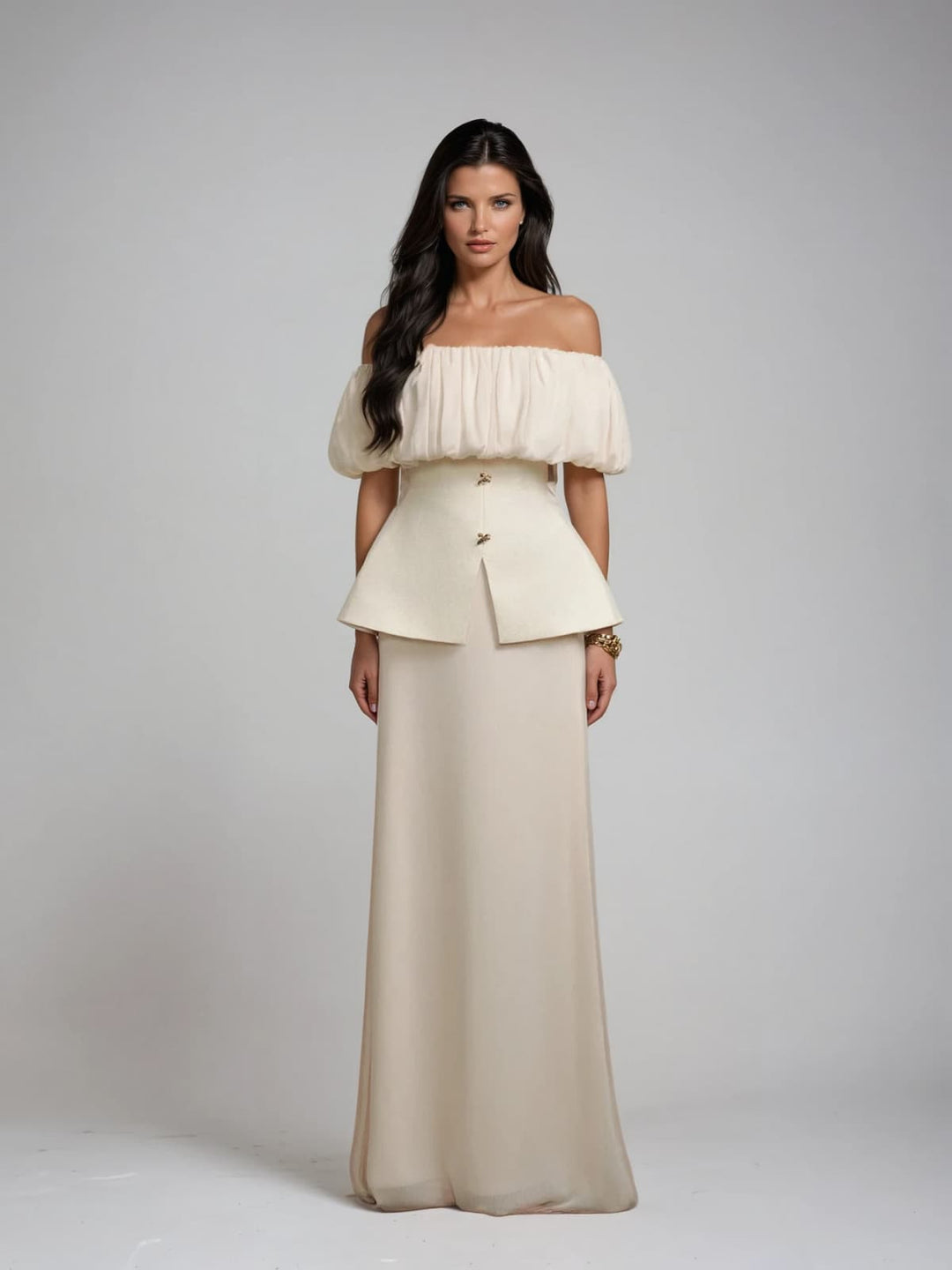Komplet spódnicy warstwowej Oracion z bufiastymi rękawami i falbanką