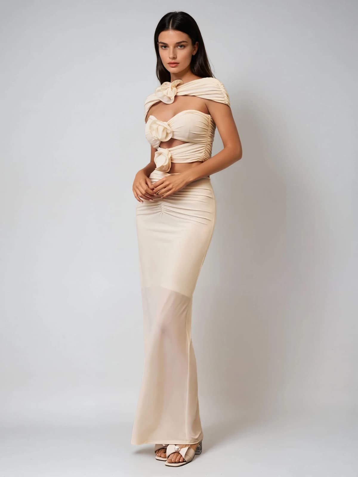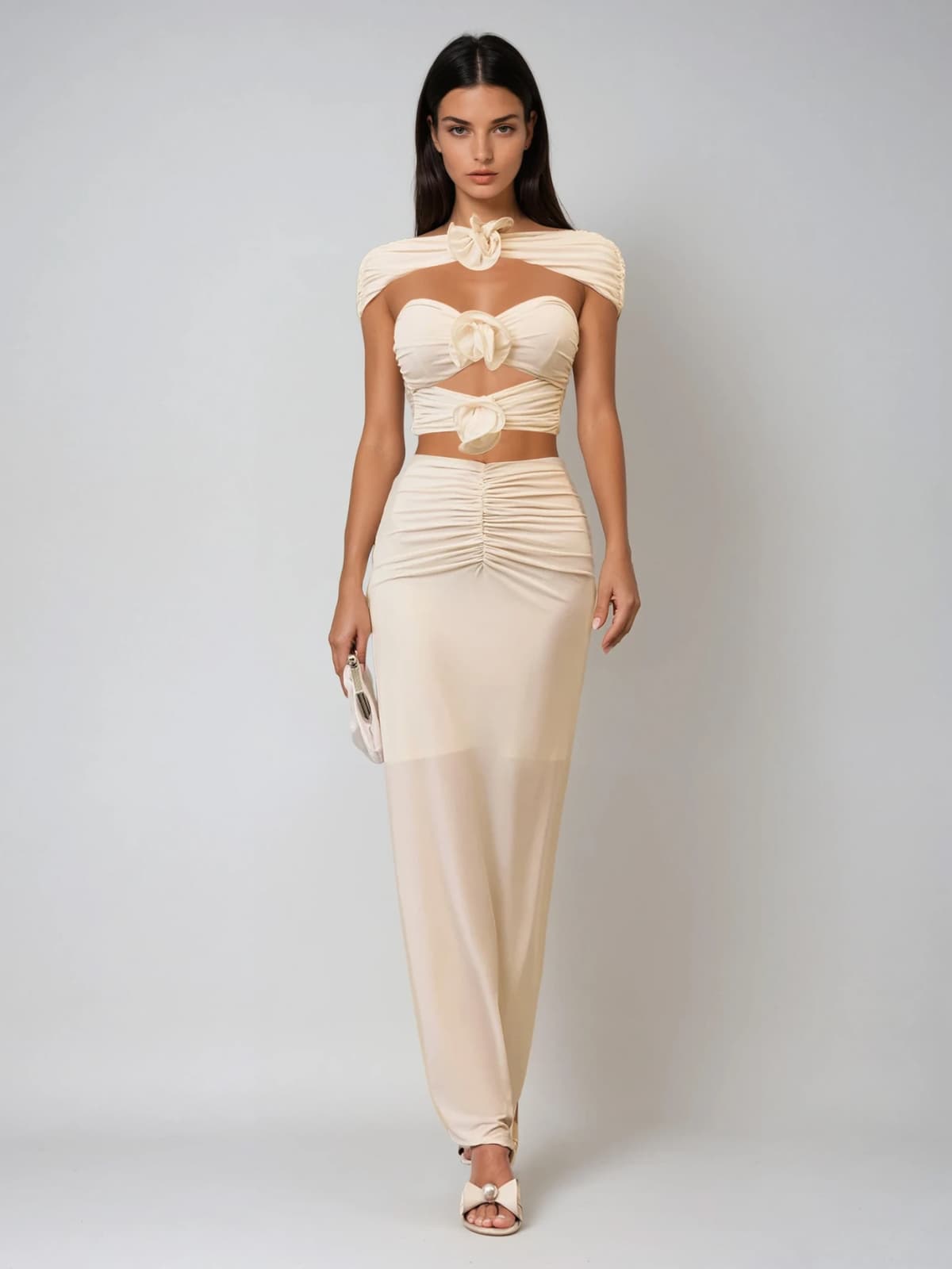 Komplet spódnicy z marszczeniami i wycięciami w kwiaty Ilvandis