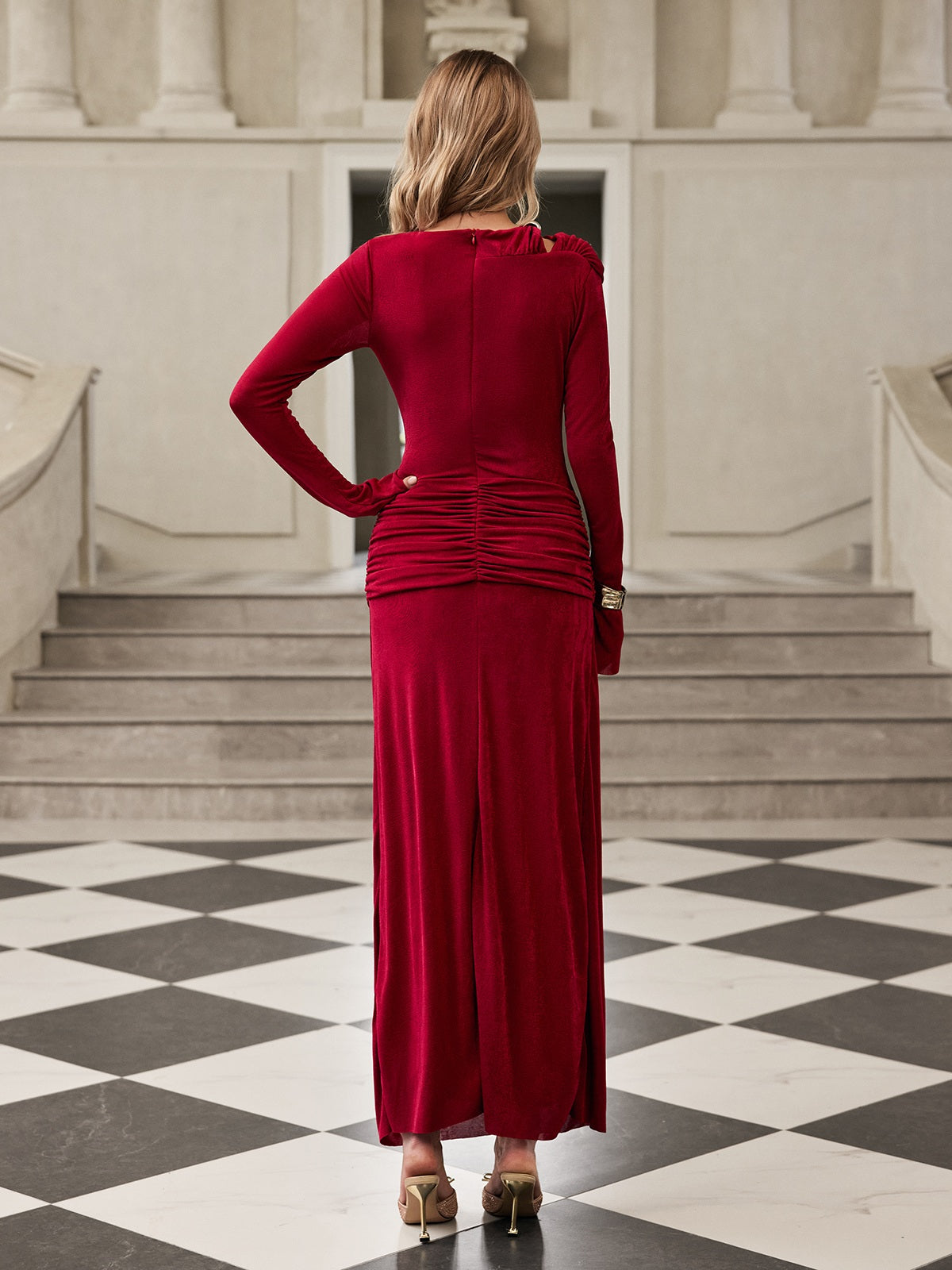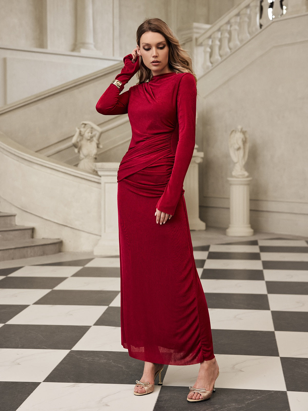 Sukienka Gazra z długim rękawem i aksamitem w stylu maxi łączy w sobie luksusową wygodę i ponadczasową elegancję w jednym, zachwycającym elegancie. Wykonana z bogatego aksamitu, ma miękki, podkreślający figurę krój, który pięknie się układa. Długie rękawy dodają jej wyrafinowania, dzięki czemu idealnie nadaje się na oficjalne okazje i wieczorne wyjścia. Uzupełnij swoją garderobę o tę sukienkę, która z pewnością zrobi wrażenie, gdziekolwiek się pojawisz.
