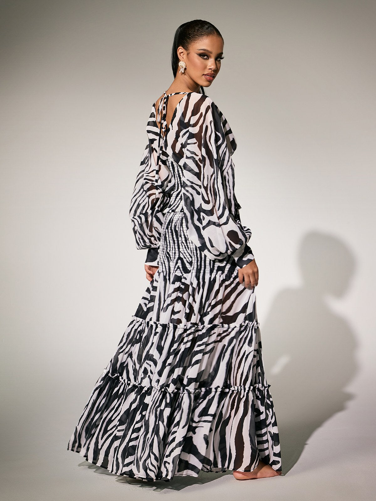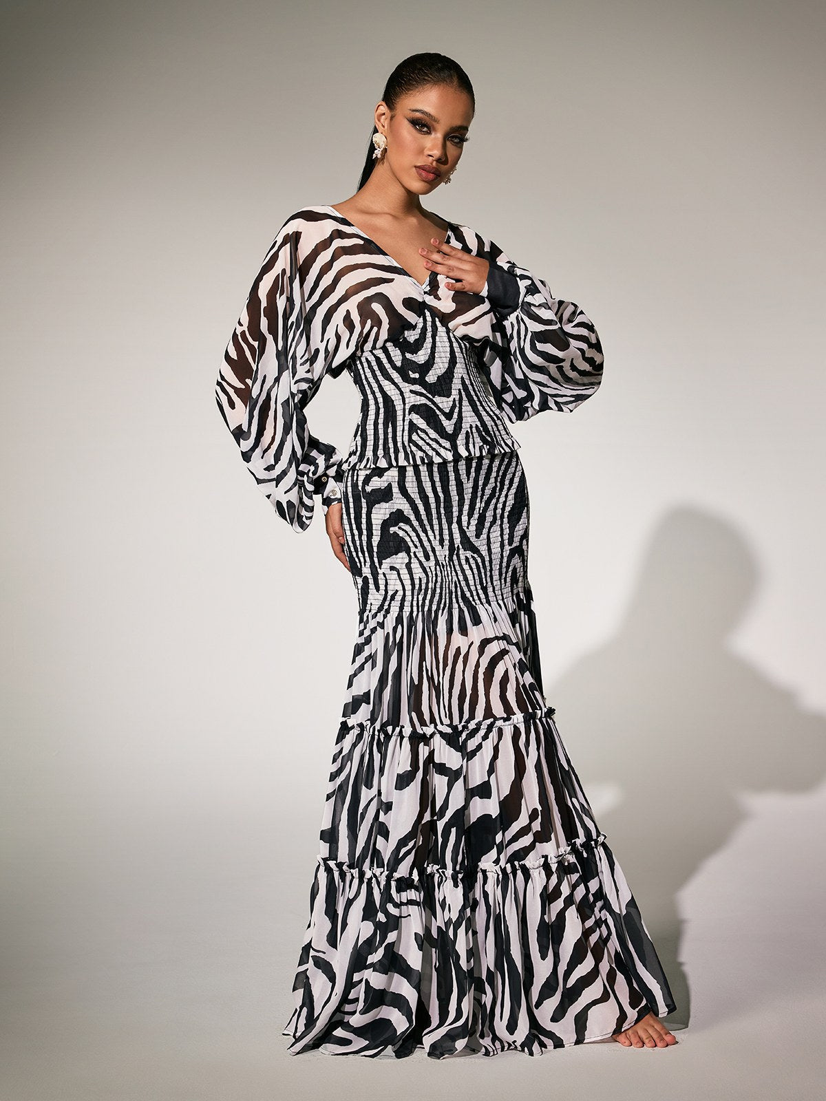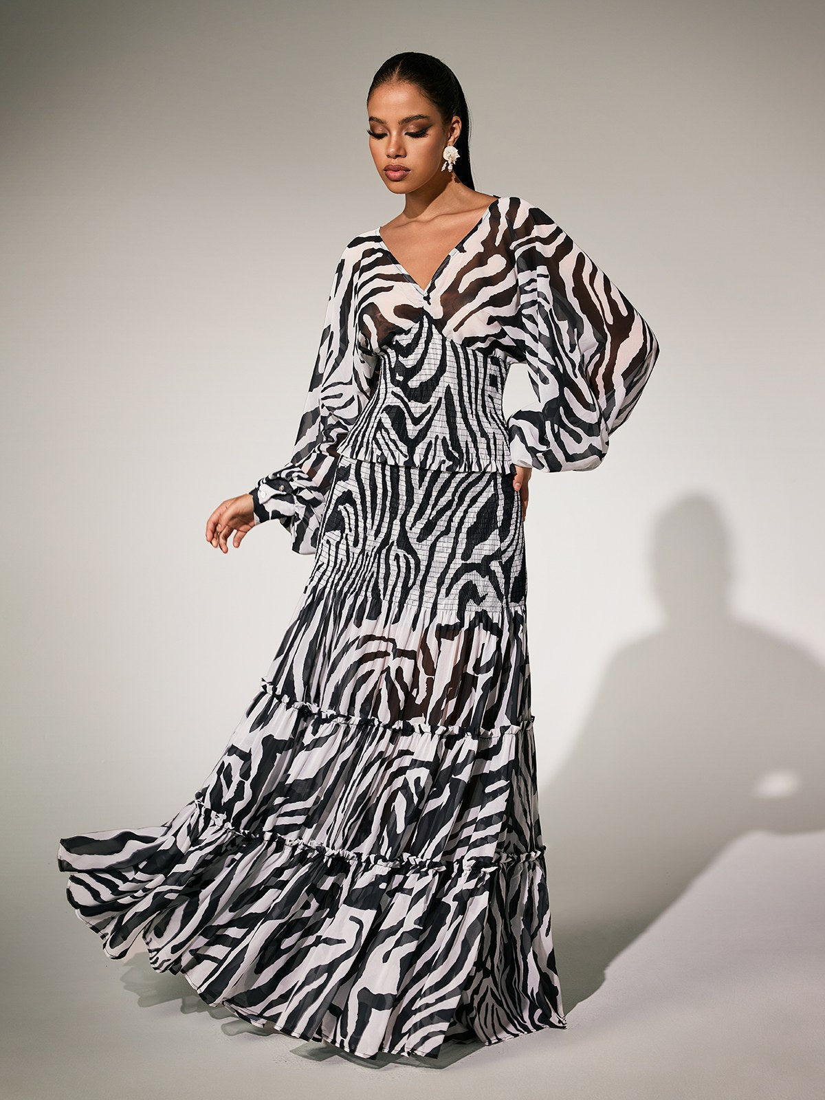 Wyróżnij się z kompletem spódnicy Panthea V Neck Zebra. Składający się z atrakcyjnej bluzki z dekoltem w serek i stylowej spódnicy w zebrę, komplet łączy odważne wzory z eleganckimi krojami, tworząc efektowny look. Idealny na każdą okazję, a wygodny krój zapewni Ci poczucie pewności siebie. Wyjdź z klasą i odkryj swoją dziką naturę w tym wyjątkowym zestawie.